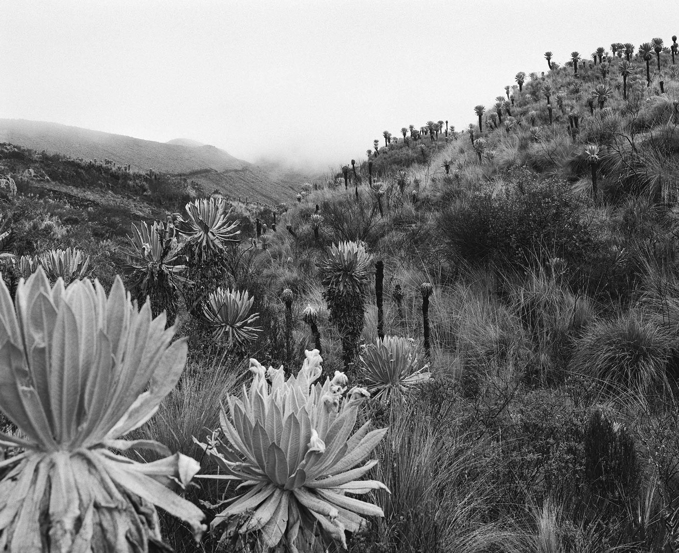 Dieses Landschaftsfoto entstand bei der Besteigung des aktiven Vulkans Cumbal im Süden Kolumbien. Er ist mit seinen 4764 Metern Teil einer kleinen Vulkankette an der ecuadorianischen Grenze. Die dort häufig vorkommenden Pflanzen werden Schopfrosetten (Espeletia) genannt und können bis zu 8 Meter Wuchshöhe erreichen.