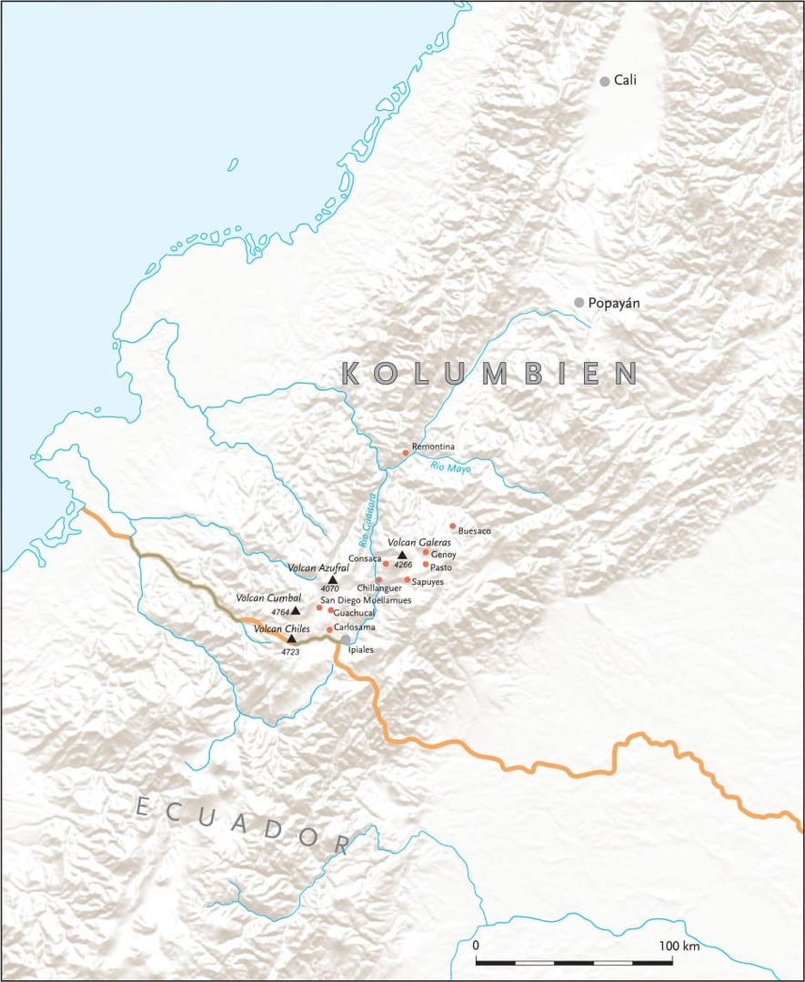 Die montaña de Pasto ist ein mit dichtem Wald bewachsenes Gebirge – aber die schrecklichste aller montañas. Grundloser Koth und Hohlwege, daß sich kaum der Leib des Pferdes durchdrängen kann. Dazu Bäume, welche umgestürzt den Weg versperren. In Europa räumt man den Baum aus dem Wege. Hier verändert man den Weg. Reisetagebuch, Aufenthalt in Pasto, ca. 19. – 22. Dezember 1801